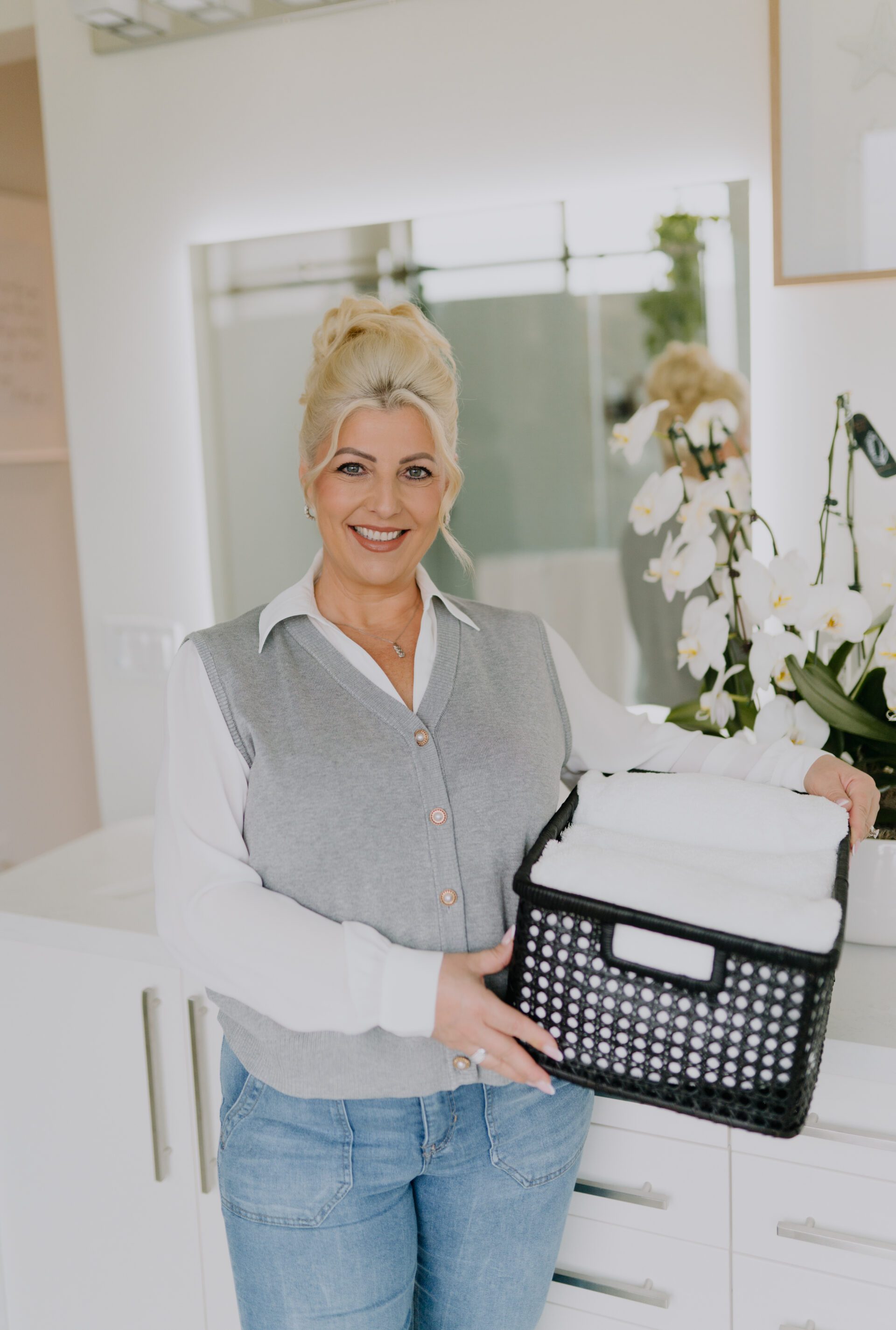 Hi, I’m Gabi. My story begins on a small farm outside Budapest, Hungary, where my passion for organization first took root. Even as a six‑year‑old, I found joy in rearranging my parents’ kitchen, creating order wherever I could. My grandmother – the true Martha Stewart of our town – became my greatest influence. She taught me the art of a beautiful home: polished silverware, crisp linens, fresh flowers, clever cleaning tricks, and meals made from scratch with love. Her grace, creativity, and standards shaped everything I do today.